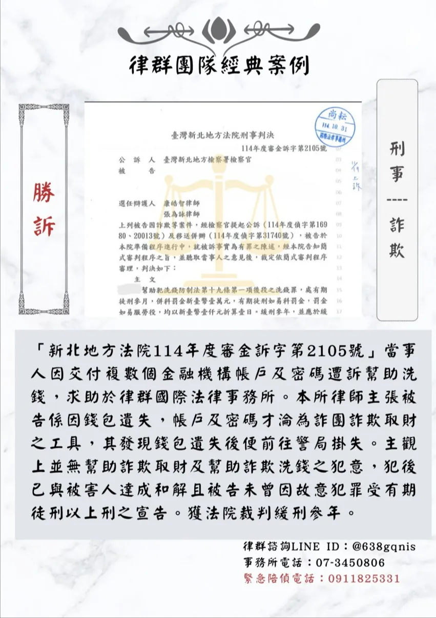 首頁 > 案例見證 > 刑事案件 > 刑事|詐欺|勝訴