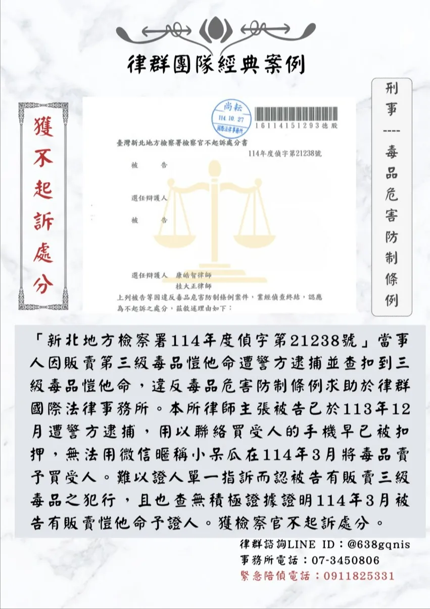 首頁 > 案例見證 > 刑事案件 > 刑事|毒品危害防制條例|獲不起訴處分